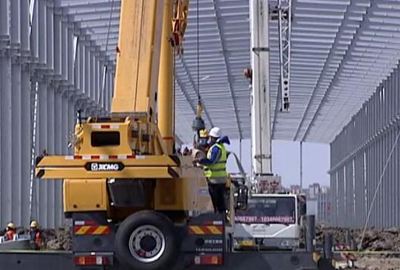 米兰·(milan)钢构合作吊装40吨工程现场